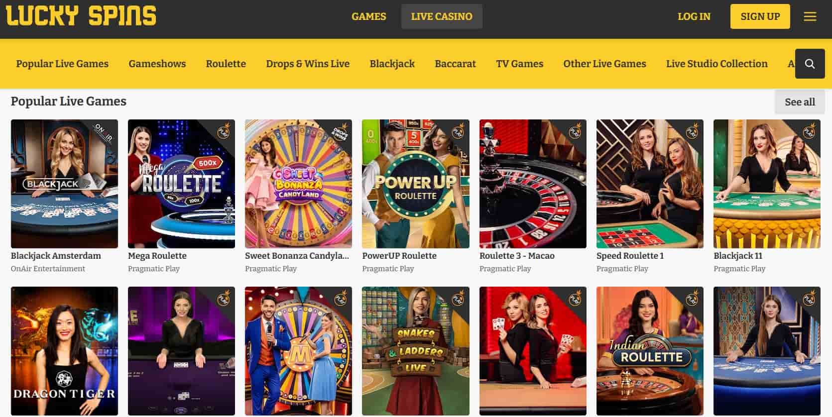 flott. Men nei, hvis du bruker søkefeltet, finner du en flott samling av RNG-rulett, blackjack, poker og baccarat. Du trenger bare å lete litt mer etter dem. De samme gevinstene. Fortunate Spins casino tilbyr et mye bedre spillutvalg enn for eksempel Christchurch online casino, som tilbyr mindre enn halvparten, men med mye enklere navigering. Så jeg ville ikke la denne lille ulempen avskrekke deg. Lucky Spins casino tilbyr mer enn 40 programvareleverandører, noe som er ganske lavt sammenlignet med nettsteder som Christchurch casino med 70+ og Change casino med 100+ programvareleverandører. Selv om det er et lavere antall enn gjennomsnittet, er leverandørenes Lucky Spins-applikasjoner alle ledende navn og foretrukket av online casinoer overalt. Her er noen av de beste videospillleverandørene å velge mellom: Play ‘n Go Press PC-spill Spinomenal Booming Games Red Rake Online-leverandørspill Live-casinospillene har sin egen dedikerte seksjon på Lucky Spins casino, så du trenger ikke å bekymre deg for å finne dine standarder eller dine favorittspillprogrammer. Utvalget er ganske sterkt med over 700 titler, mye mer enn lignende Greatwin som bare har rundt 100 bord, mens CasinoDays (også eid av White Celebrity B.V.) har over 1000 live dealer-spill tilgjengelig. Live-spill arrangeres av en rekke leverandører, inkludert OnAir Entertainment, Bombay Live, Practical Play, Ezugi og Development. Kundesupport Live chat 24/7 E-post customersupport@luckyspins.com!.?.! Telefonnummer Ikke aktuelt Andre kanaler Ikke aktuelt