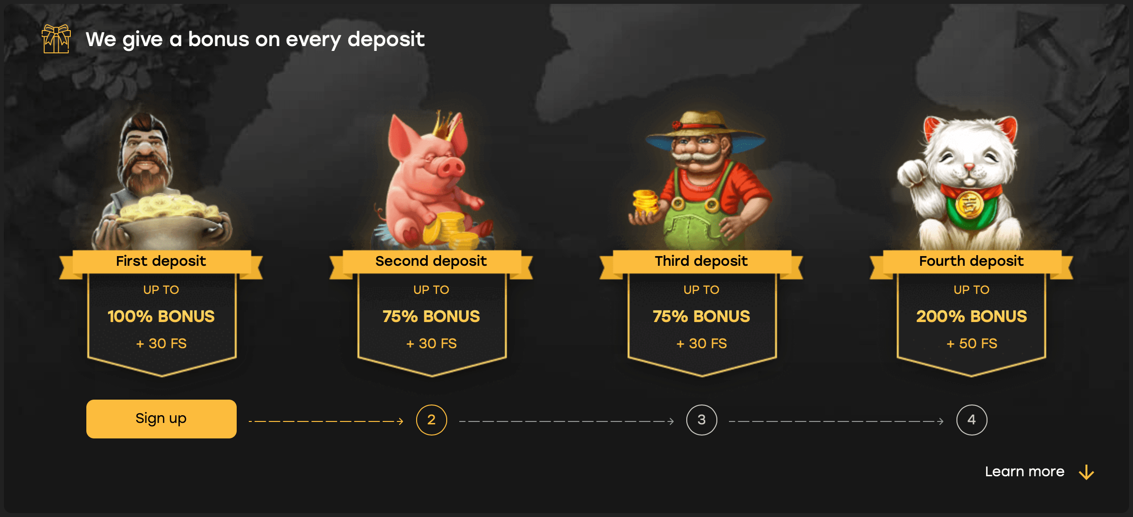 A minimal down payment of $20 is needed to claim each part of the bonus. Each complimentary spin will be worth $0.20; you can use them on the Fairspin Bonanza 1000 slot.